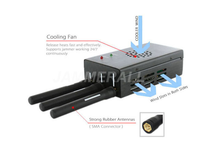 Dieses zwei--ein im Störsender ist ein intelligentes Signal, das Gerät staut. Es kann fast jede drahtlose Videokamera, drahtlose LANS und Bluetooth sperren. Es ist einfach zu benützen und einfach zu tragen. Der Frequenzdurchschnitt sind 900M (895MHZ-1005MHZ), 1200M (1195MHZ-1305MHZ) und 2400M (2395-2505MHZ). Alle Frequenzen in dieser Strecke können Block sein. Er kommt mit einem starken 900mW der Energie, Ausrüstung bis zu einem Abstand von 20 Metern zu sperren. Mit DC8.4V-/2600mA/hlithium-ionen-batterie ist die ununterbrochene Arbeitszeit ungefähr 90 Minuten. Und die Körperverletzung ist wieder aufladbar und kommt komplett mit dem Aufladungsadapter, also können Sie überall aufladen, das Vorwurfsausrüstung hat.